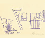 図面はピエティラの弟(建築家、レイマ・ピエティラ)が描いた。地下のサウナや、屋外のパビリオンなどのスケッチも見られる。